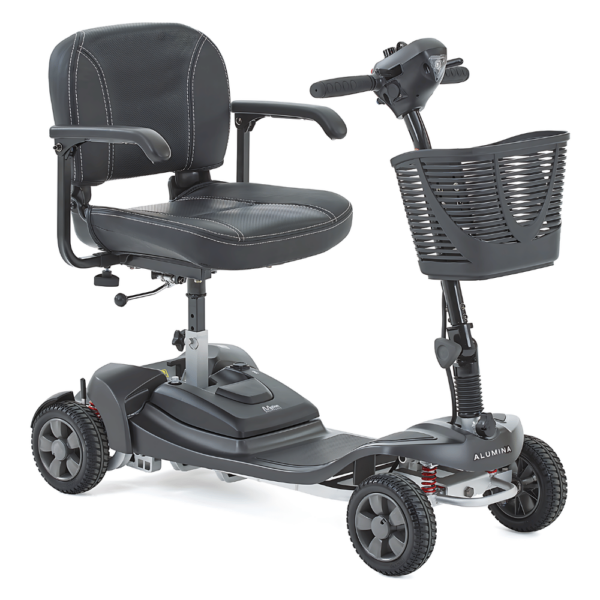 The Alumina is a great option for a lightweight, transportable scooter. It’s simple but stylish design makes it very user friendly. The padded seat offers comfort, and the spacious storage basket makes a perfect addition for shopping.