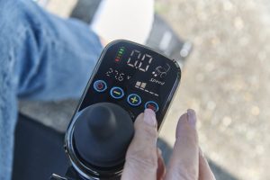 The Motion Healthcare Nitron is an excellent compact foldable Powerchair. The lithium battery charges on- or off-board, adding convenience to every journey, while the flip-up armrests ensure easy transfers and adaptability. The ultra-lightweight carbon frame makes the Nitron incredibly easy to lift, manoeuvre and transport, without compromising on strength or stability. Its modern design not only reduces the overall weight but also enhances durability for everyday use. The Nitron’s clever inward-folding design allows it to pack down compactly in seconds, making it simple to store at home or pop into a car boot – ideal for travel or everyday convenience. The Nitron gives you the flexibility to charge wherever suits you best – whether it’s plugged in directly or with the battery removed. It’s a practical solution for home or on-the-go charging. The intuitive digital display puts the user in control with clear, easy-to-read information at the fingertips. From speed settings to battery levels, everything the user needs is displayed in a modern, user-friendly format. The Nitron can travel up to 4 mph for up to 7.5 miles on a single charge carrying a maximum weight capacity 18.9 Stones/117 Kilos.