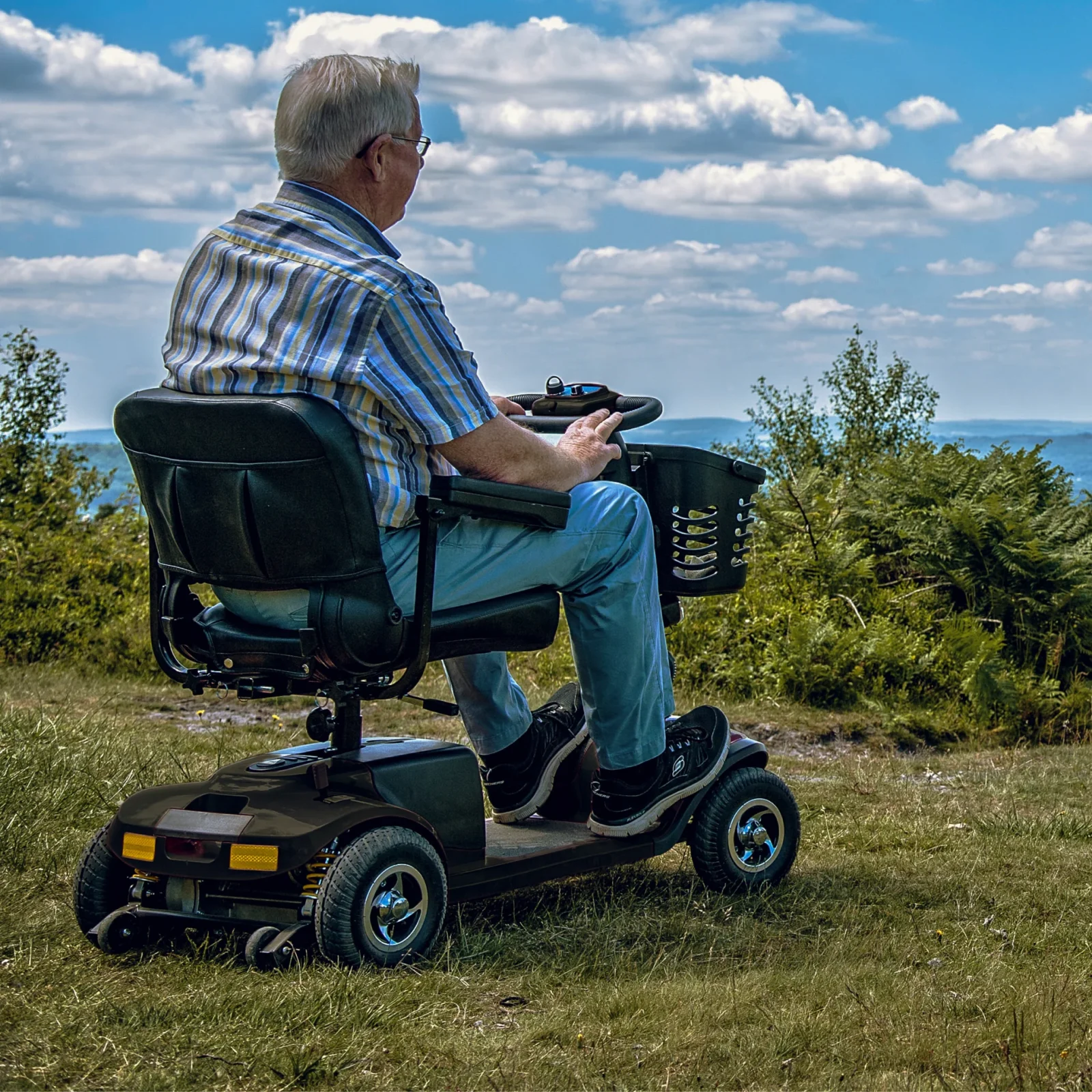 The Lithium Vantage offers an impressive weight capacity and long-range allowing you to go about your day without worrying about your batteries. The Vantage can tackle inclines with ease as well as tougher terrain. The LED lighting provides additional safety whilst travelling at night and this scooter also easily disassembles.